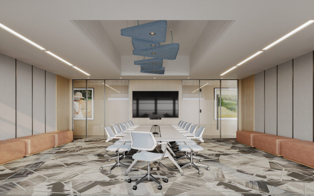Installation adds another layer of flexibility. Track-based mounting allows suspension points to adapt around existing mechanical systems. This makes LAYER especially useful for tenant improvements and retrofit-heavy projects. At the same time, strong acoustic performance and practical lighting output support use across workplaces, hospitality spaces, education settings, and healthcare interiors.