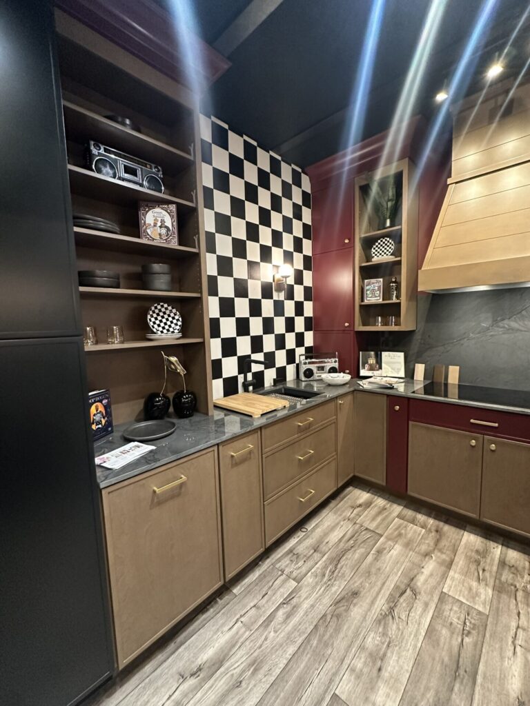 The booth unfolded like a stage set, anchored by an oversize guitar and a piano rendered in layered woods and lacquered blacks. It was bold, even playful. But it wasn’t gimmick. The message was clear. Cabinetry sets the tempo of a space.